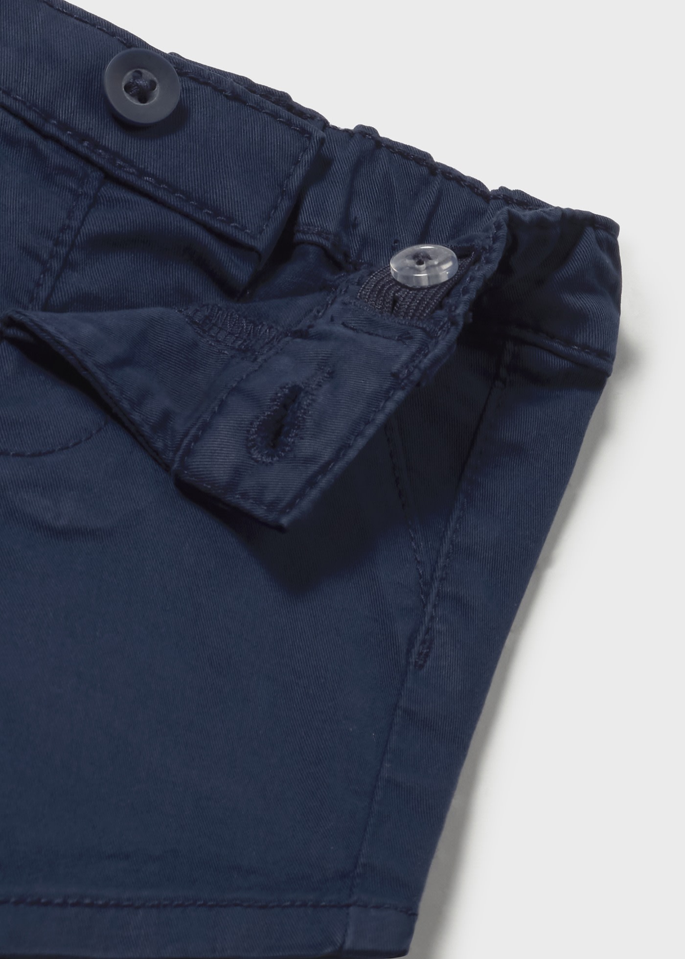 Shorts for #category. Single button fastening. Adjustable elastic with buttons on the inside of the waistband for a better fit. Made from soft elasticated cotton fabric. Mock, decorative front pockets. Mock, decorative pocket on the back. By choosing our cotton products you are supporting our investment in the Better Cotton initiative. Better Cotton is sourced via a chain of custody model called mass balance. This means that Better Cotton is not physically traceable to end products, however, Better Cotton Farmers benefit from the demand for Better Cotton in equivalent volumes to those we source. Design belonging to our Mayoral Basics collection, an essential garment in their wardrobe to complete any look.